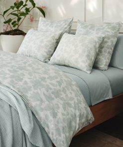 Our Camellia Organic Print Sateen Duvet Cover brings nature into your bedroom like never before. Inspired by sunlight filtering through California’s coastal forests, this design features vintage-style florals and windswept leaves in soft, layered detail. Crafted in Portugal from 100% GOTS certified organic cotton, the smooth sateen fabric offers a soft, silky handfeel with a subtle sheen—perfect for those who love a slightly warmer layer that’s still naturally breathable and gentle on skin.