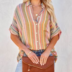 Be the first to review “Camille Striped Woven Button Down Top”