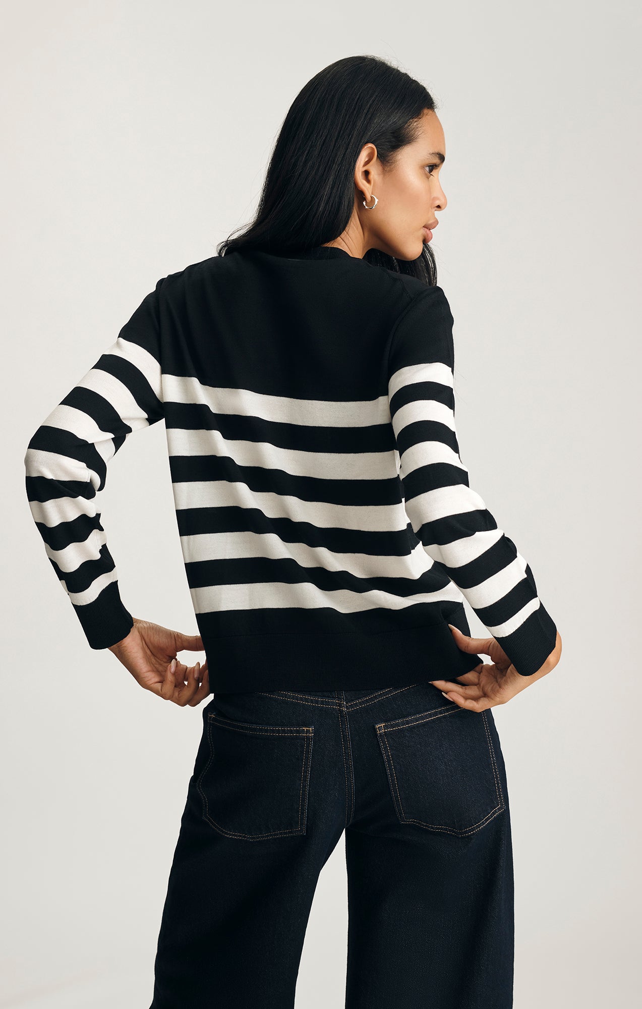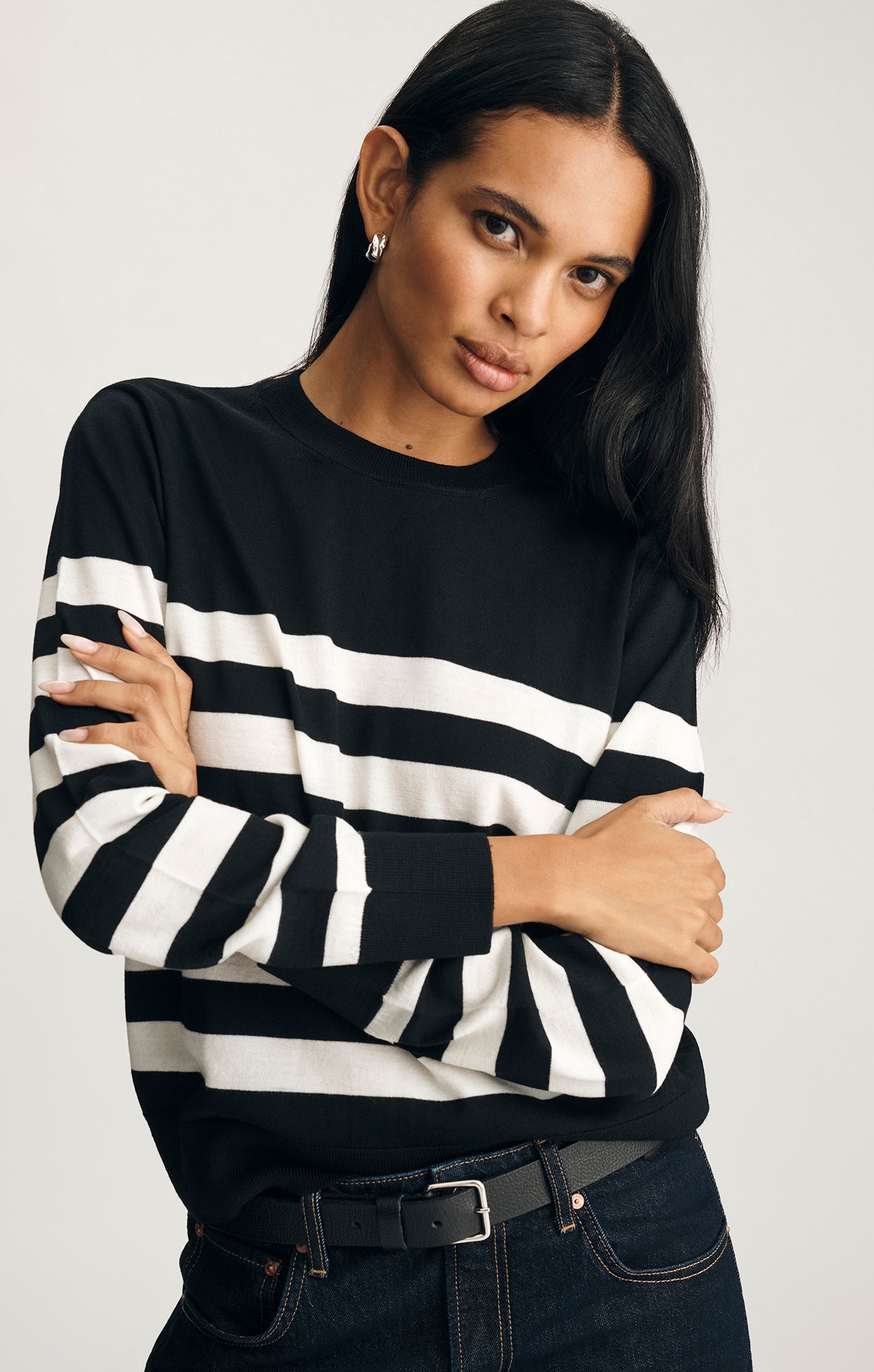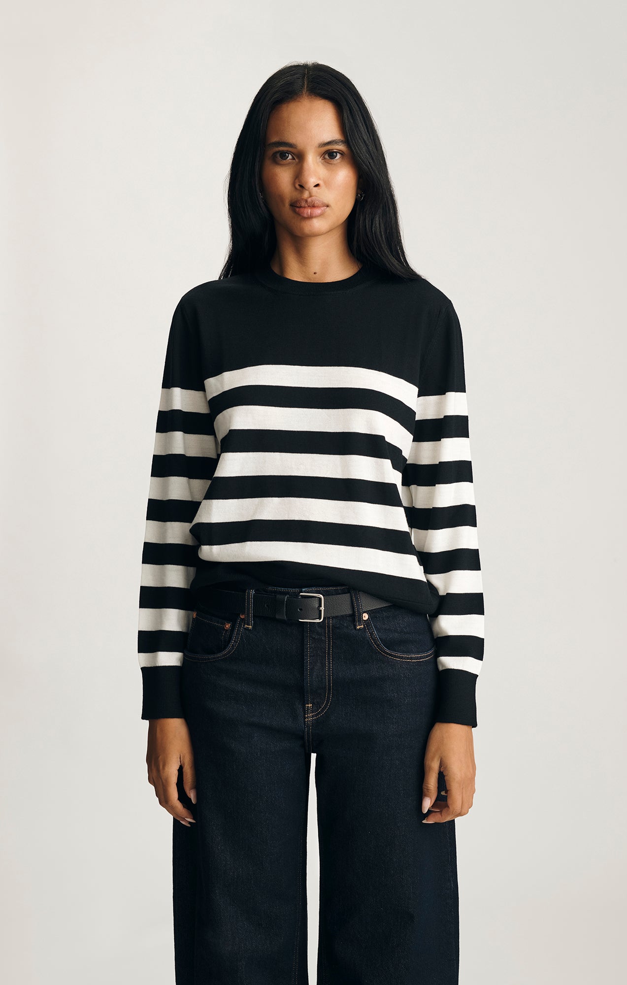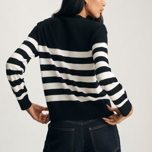 Be the first to review “EDITION MERINO WOOL CREW NECK SWEATER IN BLACK WHITE STRIPE”