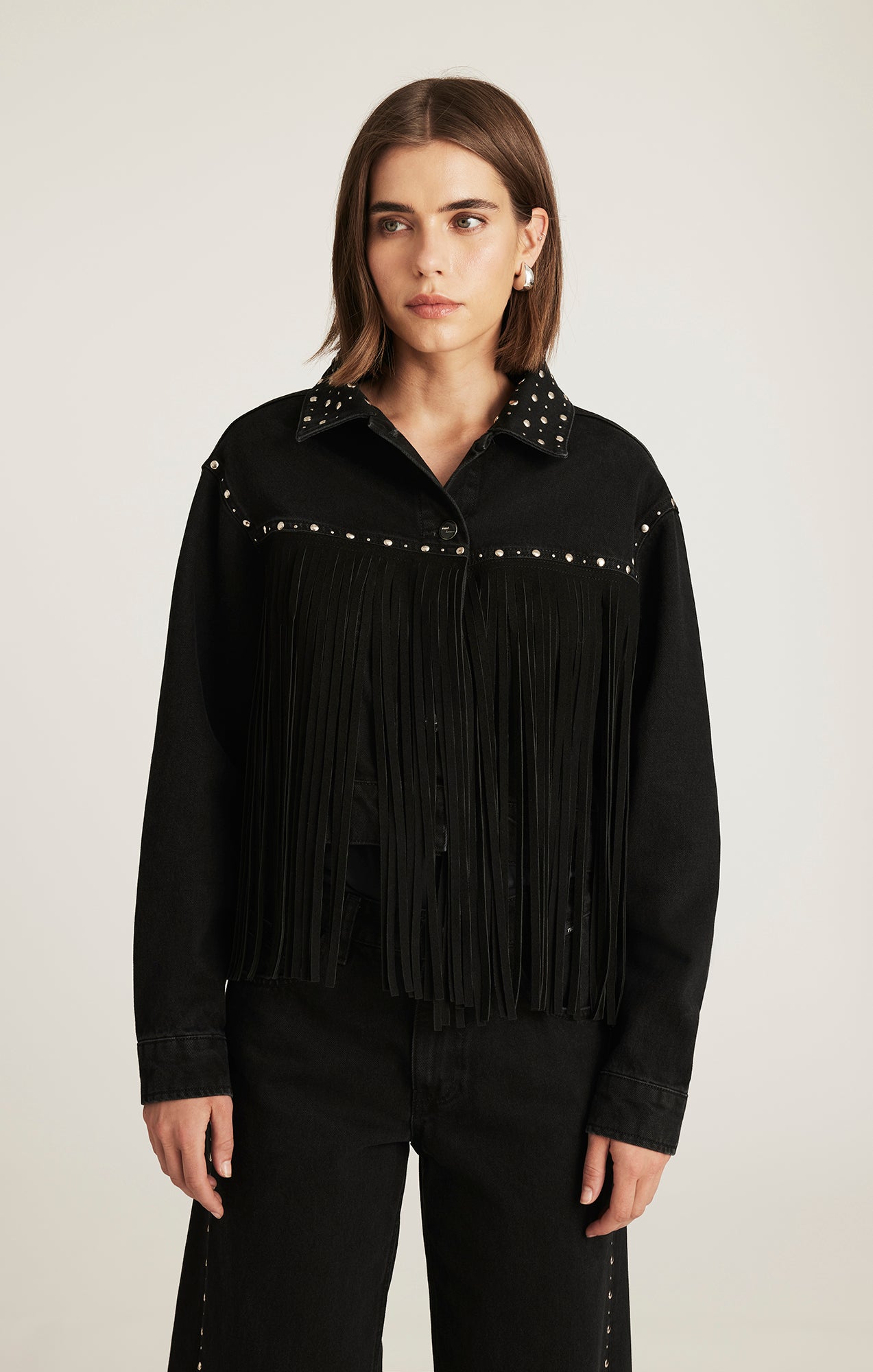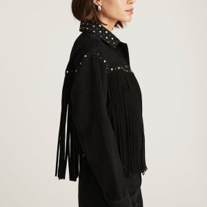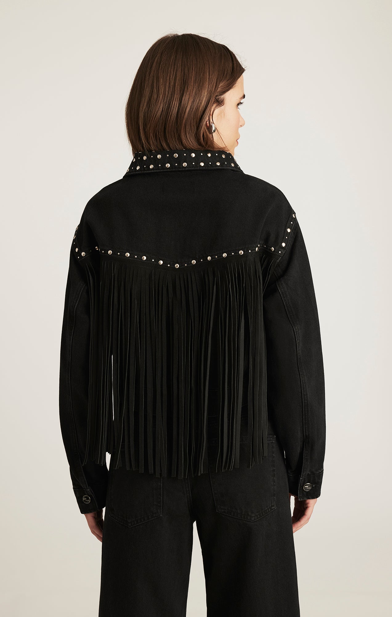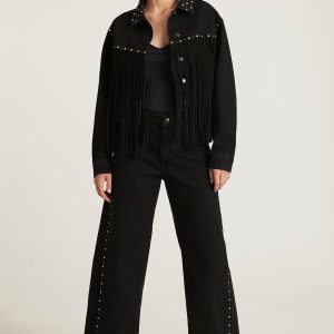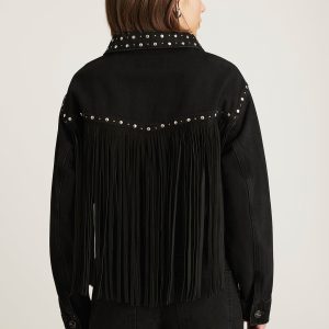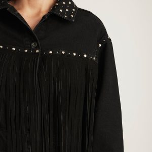 Be the first to review “JENNA FRINGE DENIM JACKET IN SMOKE FRINGE DENIM”