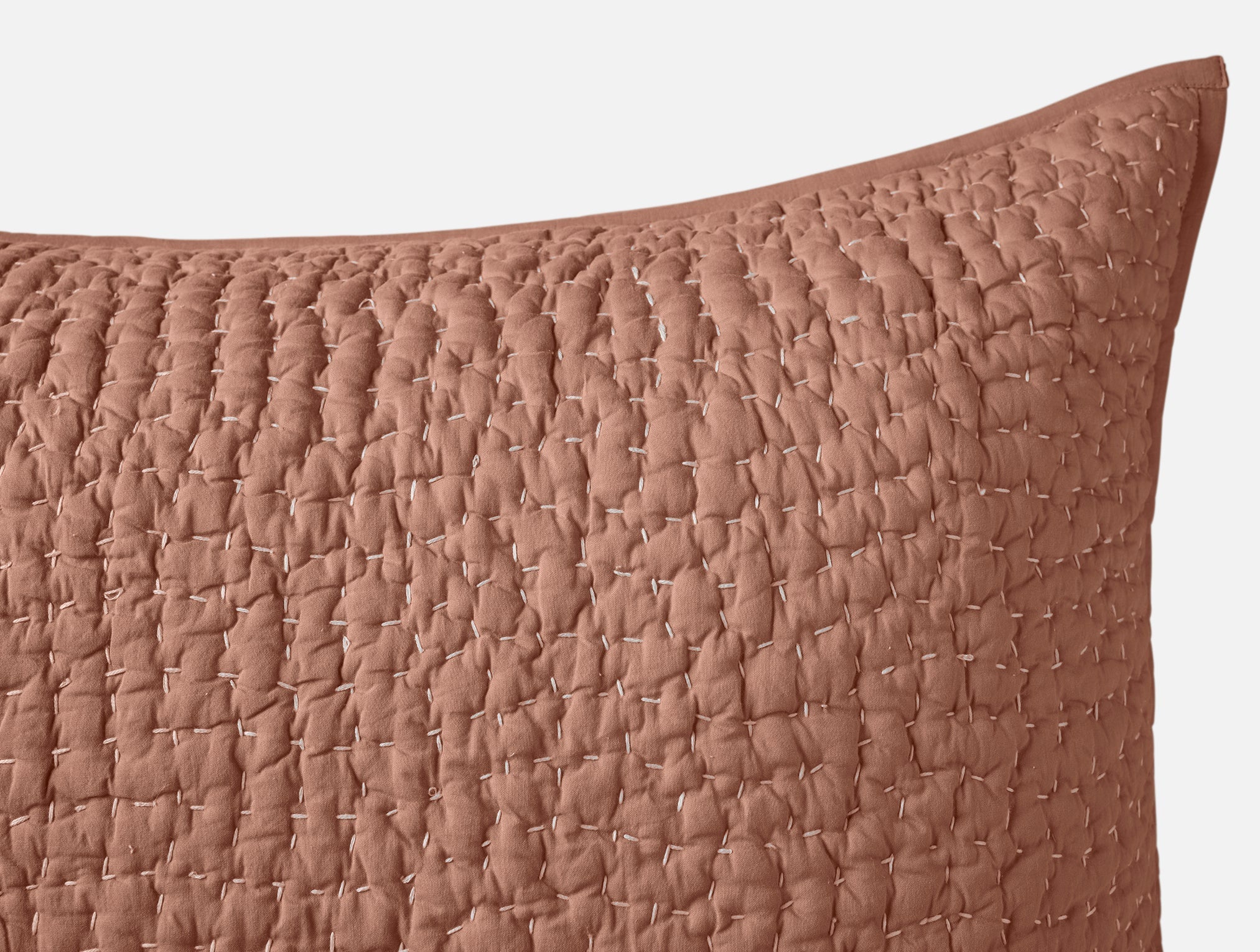 Our sham is hand embroidered with waves of tiny, contrasting stitches, for great texture and color from end to end. On the Undyed version, we’ve used multi-color thread for vibrant variation. Crafted of soft, breathable organic cotton, inside and out.
