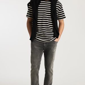 Be the first to review “STRIPED SHORT SLEEVE CREW NECK T-SHIRT IN ANTIQUE WHITE”