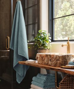 Nurture your skin with the natural softness and performance of premium organic cotton. We spin our long-staple Turkish cotton into a lightweight yarn, then weave it into narrow channels for enhanced drying power. Where conventional towels made with chemical softeners can be waxy to the touch and actually repel water, ours are naturally soft, plush, and absorbent without feeling thick or heavy.