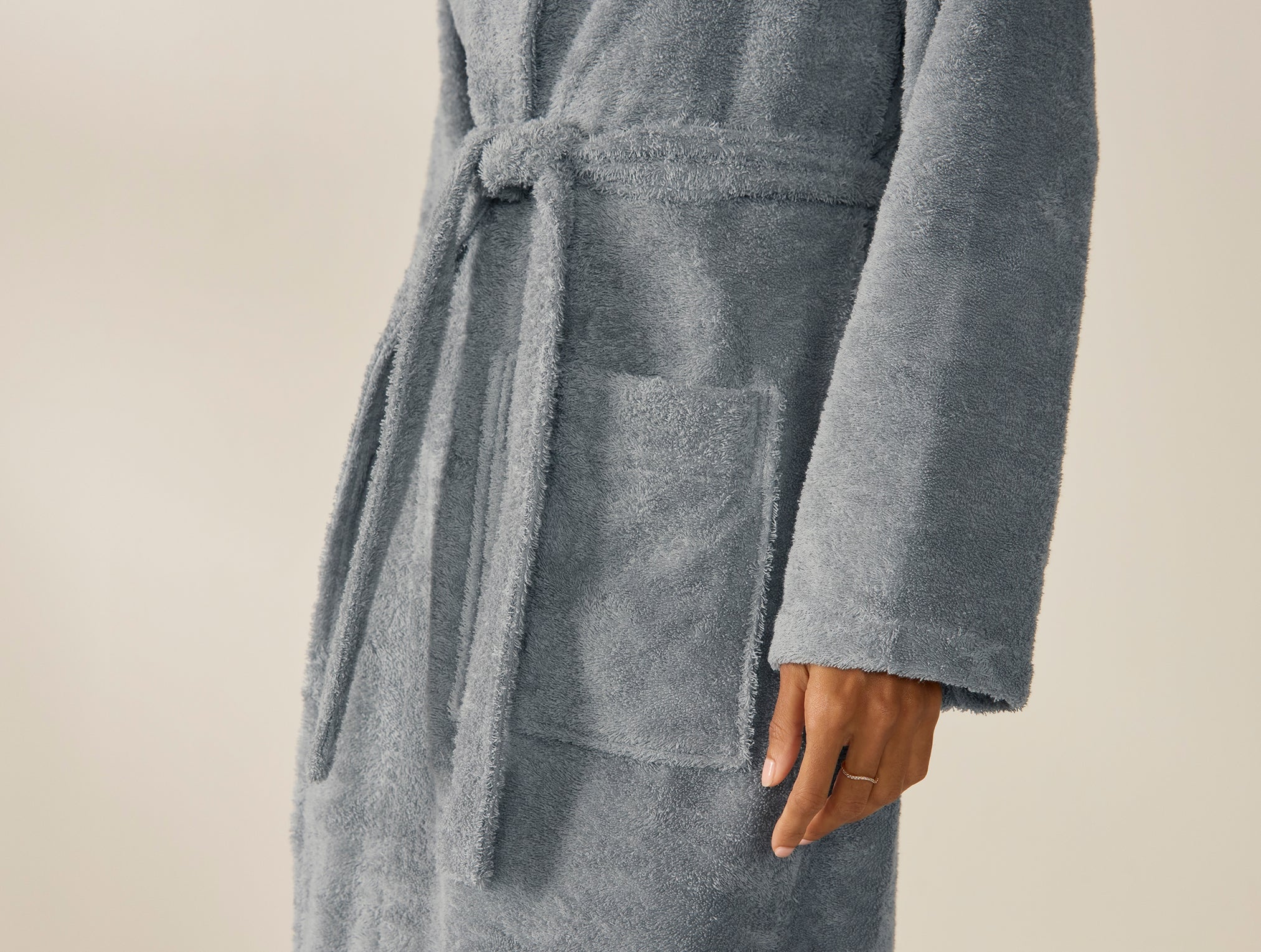 Inspired by our best-selling organic cotton Cloud Loom towels, this robe begins with the same long-staple cotton, loomed into single loops that feel thick and plush, yet lofty. The Aerospin process aligns the fibers in each yarn, making the robe just as soft and absorbent as our towels but a touch smoother and sleeker. The classic shawl-collared silhouette wraps cozily and features an adjustable belt and side pockets.